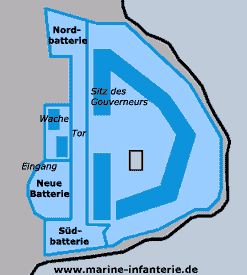 und landseitig über drei Bastionen. Die Stärke der Garnison