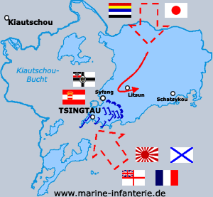 chinesische Landstreitkräfte sowie britisch-französisch-russische Seestreitkräfte