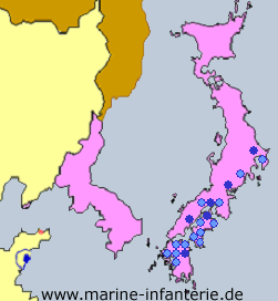 Mit dem Fall der Festung Tsingtau am 07. November 1914 ergab sich die verbliebene Festungsbesatzung den Japanern. Die Japaner durchkämmten noch am selben Tage das Vorgelände zwischen der Stadt und der vormaligen Stellung. Alle Gefangenen wurden dann auf dem Gelände der Bismarck-Kaserne gesammelt. Aus Angst vor Sabotage wurden sie anschließend zu Fuß nach Schatsykou verlegt. Oberstleutnant von Kessinger, der Kommandeur des III. Seebataillons, führte sie - im Ganzen 1.300 Mann - am Gouverneur, Kapitän zur See Mayer-Waldeck, vorbei. Am 14. November 1914 verließ der Gouverneur als letzter Gefangener das Schutzgebiet Richtung Japan. Damit räumte der letzte deutsche Soldat Kiautschou auf den Tag genau 17 Jahre nachdem der erste deutsche Soldat es betreten hatte. Noch im November wurden alle deutschen Gefangenen nach Japan überführt. Sie wurden auf 20 Lager verteilt, die im Laufe des Krieges auf 6 reduziert wurden: |
